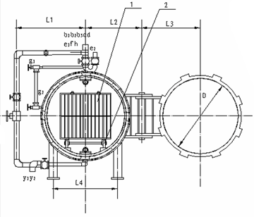 GT7C 型系列臥式殺菌鍋由鍋體、鍋蓋、開啟裝置、鎖緊楔塊、安全聯(lián)鎖裝置、軌道、滅菌筐、蒸汽噴管及若干管口等組成。鍋蓋密封采用充氣式硅橡膠耐溫密