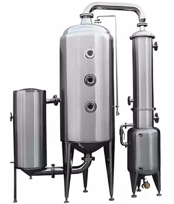 3、WZS單效外循環(huán)真空濃縮收膏器,用于單效蒸發(fā)及收濃膏。在單效正常蒸發(fā)后,關(guān)閉加熱室與蒸發(fā)室連接噴管及循環(huán)管的閥門(mén),使料液